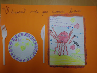 Os alunos que participaram na sessão "Alimentar a imaginação", que decorreu na Biblioteca Escolar, realizaram trabalhos muito engraçados e interessantes na sala de aula, dando continuidade à atividade.